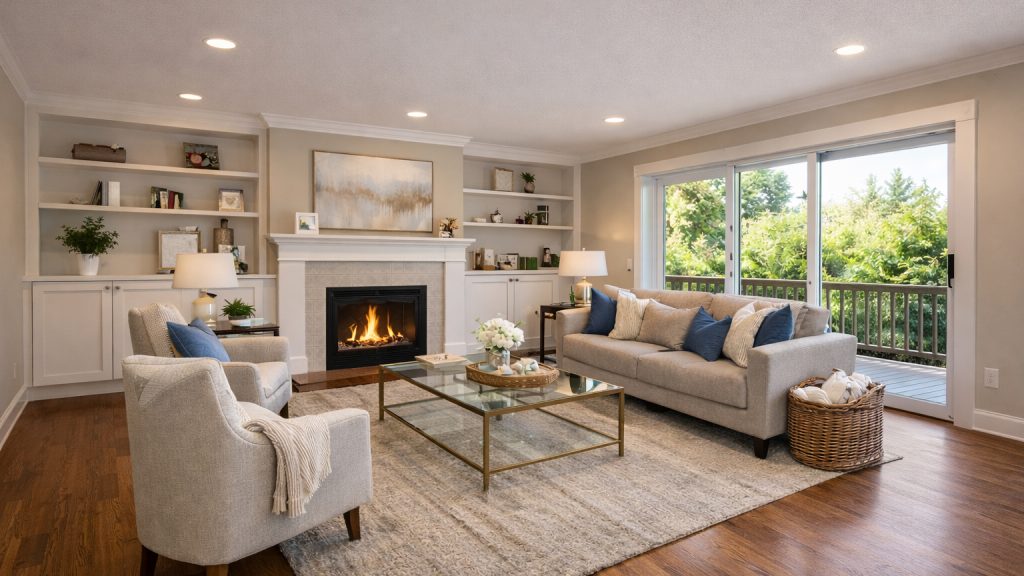 Stray items, cords, reflections, and minor imperfections removed cleanly — keeping the buyer’s eye on what matters.